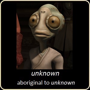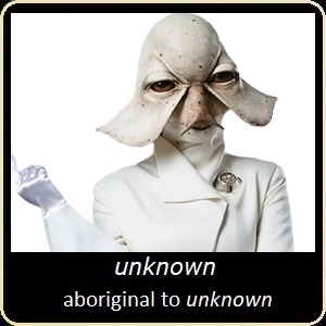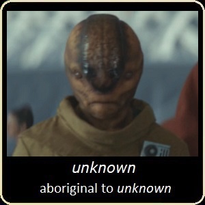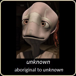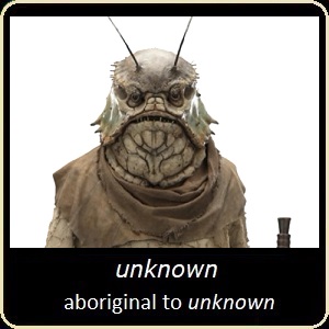 Sentient races confirmed in canon which are aboriginal to worlds not yet known, or aboriginal to worlds not yet located in any region of the galaxy: